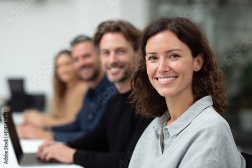group, business, professional, smiling woman, team, office, laptop, co-worker, meeting, workspace, casual attire, startup, technology, collaboration, conference, training, seminar, workplace, leadership, corporate, manager, entrepreneur, success, modern, communication, teamwork, diversity, adult, female, male, sharpened, laptop