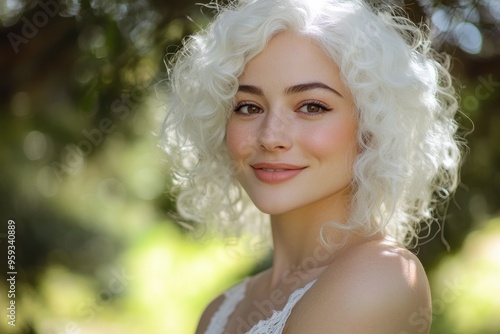 white, woman, white hair, curly, smiling, nature, outdoors, portrait, confident, beauty, natural, serene, glow, soft, bright, modern, peaceful, stylish, face, joyful, relaxed, female, natural beauty, young, fashion, hair, bride, winter, make-up, model, wedding, glamour, dress, lady, blond, snow, blond, people, coiffure, queen, person, cold, spring, flower, christmas, cosmetic