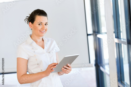 Smiling woman with tablet pc