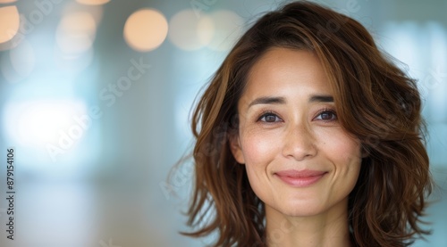 woman, smile, hair, wavy, portrait, beauty, face, female, looking, happy, people, model, head shot, glamour, fashion, lifestyle, natural, skin, make-up, eye, expression, mood, positive, confidence, cheerful, serene, radiant, elegant, youthful, vibrant, charming