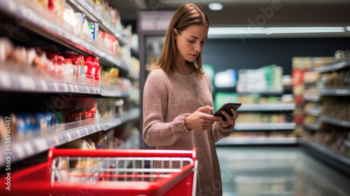 grocery, food, store, female, woman, client, consumer, shop, supermarket, market, young, purchase, mobile, mall, retail, phone, smartphone, adult, lifestyle, buy, fresh, people, technology, cart, product, streetcar, shopper, shopping, hypermarket, mobile phone, cyberspace, consumerism, online, discount, app, using, interior, indoor, mobile phone, buying, beautiful, person, buyer