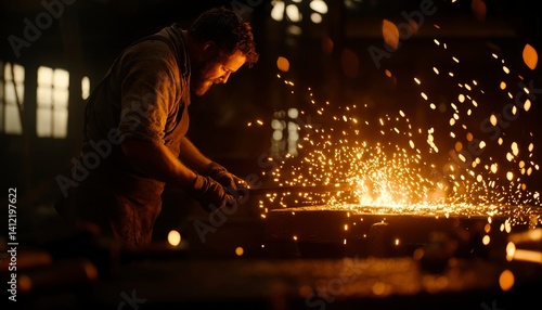 blacksmith, forge, metal, spark, fire, working, craftsman, heat, industry, workshop, iron, steel, hammer, skill, industrial, artisan, craft, glowing, molten, manufacture, hot, labor, equipment, construction, building, factory, men at work, manual, hard, technique, process, fabrication, design, create, shape, engineering, production, technology, burning, furnace, manufacturing, metalwork, strong, tool, energy