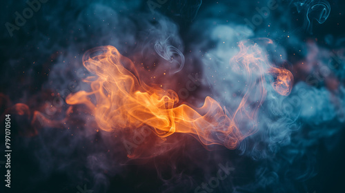 Smoke and flames, fire on black background