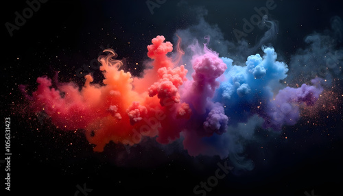 smoke, explosion, particle, colourful, vibrant, black, background, dynamic, burst, energy, bright, motion, swirl, fireworks, glow, abstract, chaos, radiant, blast, flare, haze, mist, spark, contrast, fog, fume, blend, gradient, illumination, plasma, shimmer, fiery, neon, bold, high-coloured, dramatic, cloud, combustion, dispersion, vapour