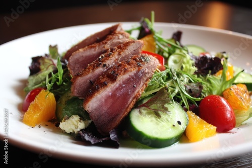 Smoked duck salad dish