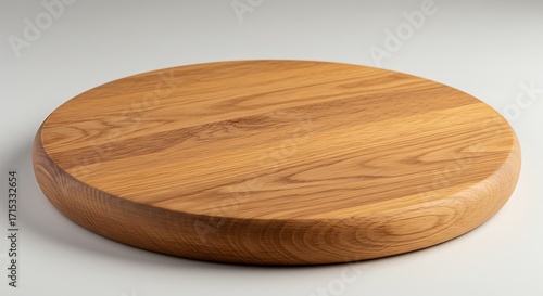 Smooth Circular Wooden Cutting Board with Distinctive Grain on Bright Background.