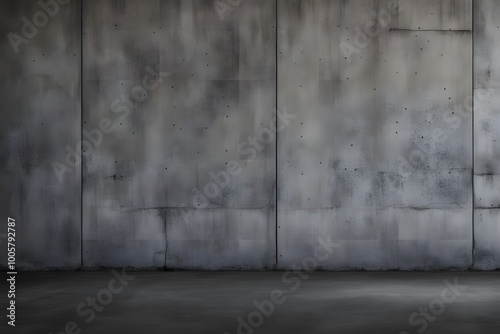 Smooth modern concrete wall with slight texture divided from the glossy floor by a bold black line, AI Generated