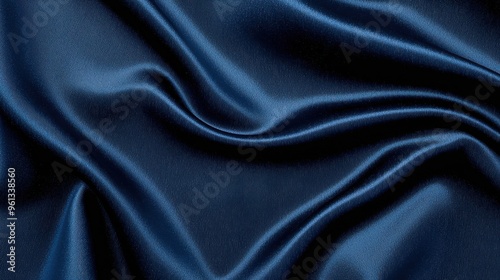 Smooth Navy Blue Silk Fabric Texture Draped Material Background Elegant Soft Textile Close Up