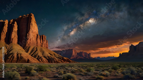 Smooth rock formations, of the Navajo Desert with celestial skies