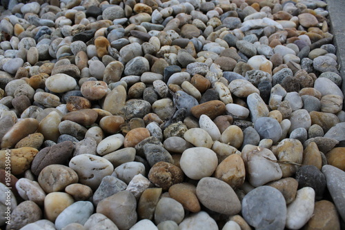 Smooth round pebbles texture background. Pebble sea beach close-up, dark wet pebble and gray dry pebble. natural gravel, texture from gravel. Gravel texture. Pebble stone background. Granite gravel