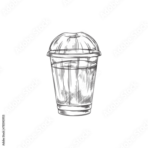 Smoothies cup engraved hand drawn vector, jar bottle with dome lid for cocktail, juice or water takeaway drink container