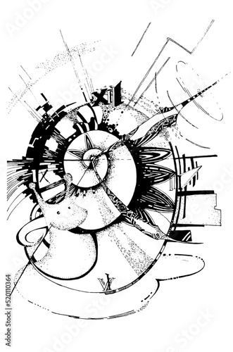vector, illustration, design, clock, time, compass, black, art, map, circle, wheel, drawing, concept, travel, eye, snail