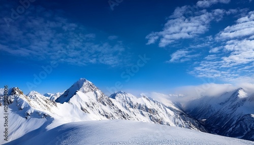 snow covered mountains under a blue sky