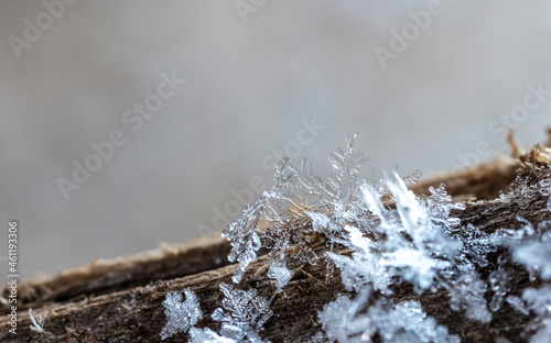 Snow in winter close-up. Macro image of snowflakes, winter holiday background.