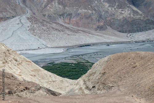 Snow mountains of Ladakh. Beautiful peak view of Himalayas. Natural beauty of Ladakh in India. Famous tourist place in the world Travel and Landscape