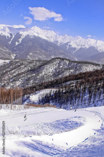 Snow slope, the route of the ski resort