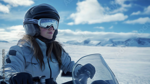 snow, winter, woman, vehicle, machine, driving, car, girl, transport, transportation, automobile, cold, ice, frost, drive, road, outside, equipment, vector, travel, white, female, snowdrift, happy, driver, motor, covered, blizzard, lifestyle, young, human, weather, clean, glasses, leisure, nature, sport, snowmobile, glacé, trip, auto, adventure, extreme, season, engine, freeze, riding, action