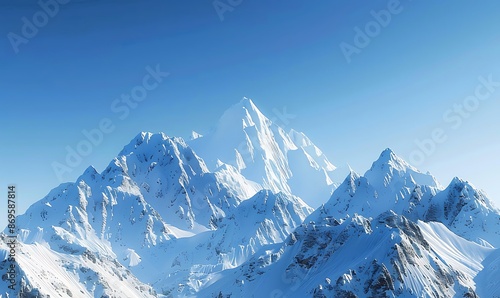 Snow-Capped Majestic Mountain Peaks, Cut Out with Clear Sky