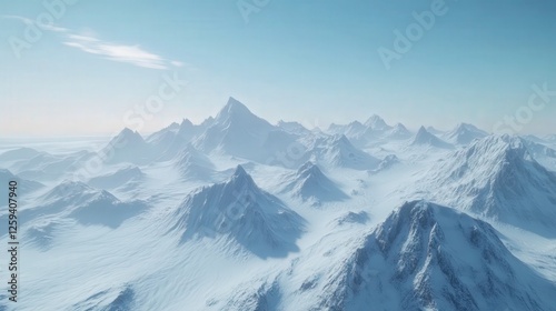 snow-capped mountain range in the Arctic, with the vast white snowfields extending toward the horizon under a clear sky
