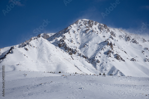 Snow-capped mountains seen on vacation, near the road, and others in nature. Do not enter.