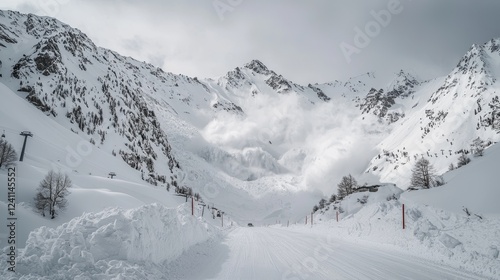 snow, cover, highway, close, due, massive, avalanche, surround, tower, white, snowy, whiteout, response, climate, condition, emergency, snowdrift, hazard, heavy, stormy, extreme, terrain, winter, major, closure, landscape, precaution, cloudy, severe, blockage, winter storm, weather, snowfall, season, shutdown, safety, danger, travel, alert, rescue