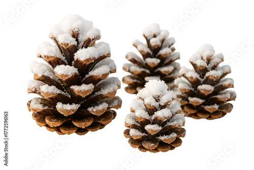 Snow-covered pine cones. Symbol of winter and festive decor.