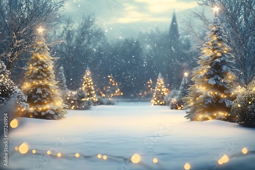 Snow-covered pine trees sparkle in the winter sun, creating a breathtaking winter wonderland