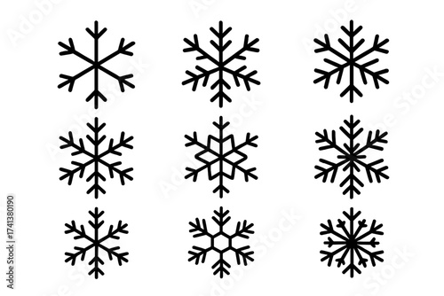 snowflake, snow, icon, winter, vector, crystal, line, set, christmas, outline, symbol, simple, ice, design, holiday, frost, collection, weather, decoration, cold, black, shape, signs, glacé, abstract, element, graphic, editable, contour, linear, hexagon, flake, pictogram, new year, december, freeze, nature, snowfall