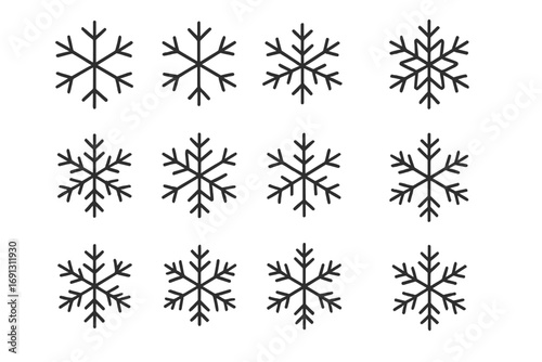snowflake, snow, icon, set, vector, winter, christmas, line, symbol, pictogram, collection, design, holiday, new year, editable, stroke, linear, minimalist, cold, glacé, flake, crystal, frost, ice, weather, season, decoration, outline, simple, clean, graphic, element, signs, card, web, app, banner, print, black, illustration