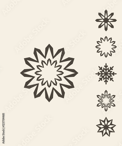 winter, vintage, snowflake, set, retro, vector, christmas, new year, nature, season, unusual, abstract, symbol, decoration, collection, silhouette, stylised, design element, flat