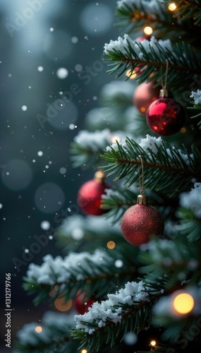 Snowflakes gently falling on a Christmas tree, snowflakes, magical