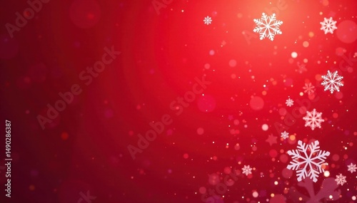 snowflakes gently falling on a warm red background, frozen landscape, red hues