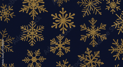 Snowflakes in gold over dark navy blue background pattern