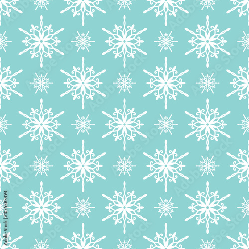 snowflake, seamless, pattern, background, illustration, winter, frost, frosty, cold, cool, glacé, snow, snowfall, holiday, christmas, new year, blue, white, turquoise, season, design, drawing, vector, geometric, symmetric, decorative, detailed, crystal, abstract, shape, star, element, simple, elegant, hand-drawn, line, outline, graphic, silhouette, art, happy, merry, unique, beautiful, doodle, repeat, wrapping, cardboard box