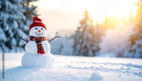 snowman, snow, winter, landscape, sunset, snowy, christmas, festive, cold, nature, snowdrift, tree, forest, mountain, cheerful, joyful, peaceful, beautiful, charming, majestic, cosy, happy, rustic, glacé, wintery, calm, relaxing, marvellously, magical, brilliant