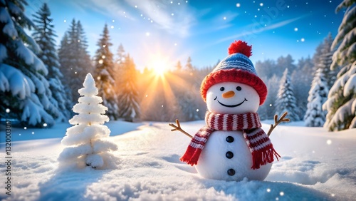 snowman, christmas, winter, snow, holiday, vector, christmas, hat, cold, snowflake, illustration, tree, card, cartoon, celebration, decoration, season, foulard, fun, december, year, greeting, happy, new, carrot