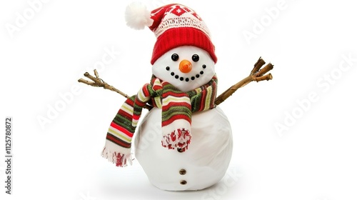 Snowman Isolated on White Background, A Charming Winter Figure Standing Alone in a Blank Canvas of Snow.
