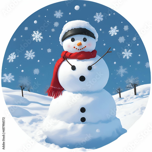 snowman with christmas tree in winter season, ai generative