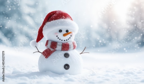 snowman with red hat and scarf background snow