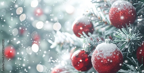Snowy Christmas Tree with Red Ornaments