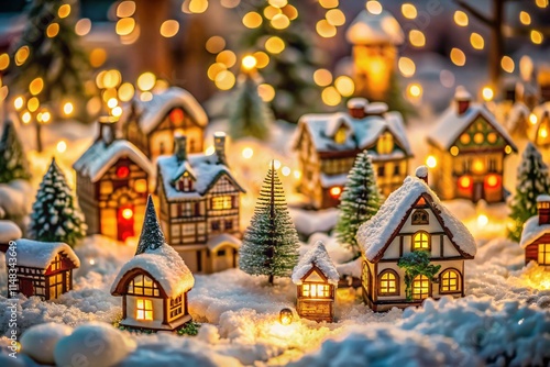 Snowy Christmas Village Macro Photography: Festive Lights & Winter Wonderland