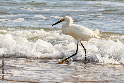 egret, egret, snowy egret, florida, beach, wave, water, ocean, sand, bird, bird, surf, sunrise, morning, sun, cloud, sky, sea