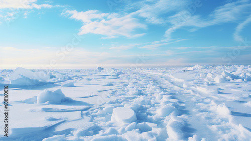Snowy Footprints Crossing a Frozen Lake: A Path of Solitude and Reflection