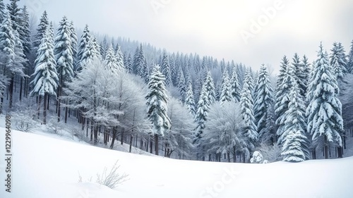 Snowy forest paradise showcasing serene beauty and winter charm with snow-covered trees, a peaceful landscape, and a sense of tranquility, landscape, snow-covered, charm