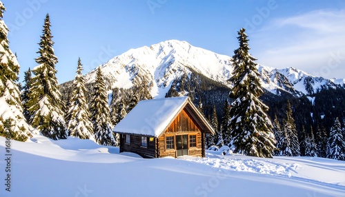mountain, cabin, snow, winter, forest, evergreen, snowy, landscape, wooden, hiking, shelter, nature, scenic, peaceful, tranquil, wilderness, outdoors, sunlight, scenery, beauty, pristine, majestic, peak, cold, alpine, silent, view, tree, pine, frosted, hill, slope, horizon, calm, stunning, wintery, wood