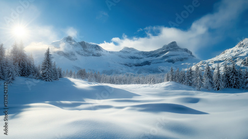 winter, snow, mountain, landscape, tree, forest, sun, blue skies, white, cold, scenic, nature