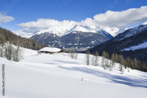 snow, mountain, winter, cabin, landscape, alps, tree, white, sky, blue, nature, cold, scenery, view, vale, travel, beautiful, countryside, rural, sunlight, season, peak, forest, hill, scenic, tour tourism, holiday, vacation, panorama, vista, tranquil, peaceful, serene, fresh, evergreen, wood, cloud, mountainous, idylli, quiet, remote, isolated, rustic, pristine, wild, wilderness, climate, glacé