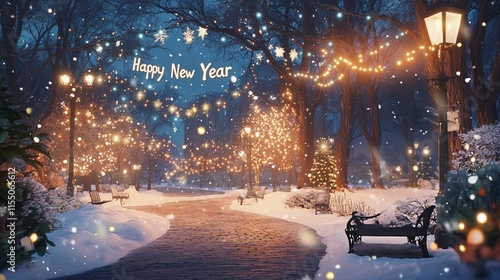 winter, snow, night, park, light, happy, new, year, holiday, festive, christmas, tree, pathway, decoration, beautiful, celebration, evening, night time, cosy, warm, calm, peaceful, magic, illumination, glowing, sparkle, sparkling, ambience, ambience, charming, romantic, fairy, snowflake, path, bench, landscape, magical, new year's eve, winter landscape, winter scene