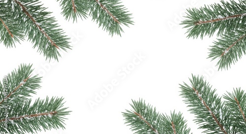 Snowy Pine Branches Frame - Elegant frame of snow-dusted pine branches on a white background, perfect for winter or holiday designs