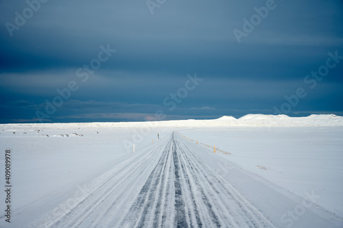 road, snow, countryside, sky, cloudy, dark, weather, cold, travel, winter, iceland, landscape, season, scenic, way, glacé, journey, nature, frost, destination, trip, nobody, polar, rural, breathtaking, ice, white, route, dusk, twilight, evening, climate, path, environment, scenery, terrain, highway, north, horizontal, outdoors, blue, atmosphere, freezing, horizon, slope, sunlight, space, no people, caucasian, outside, exterior, footpath
